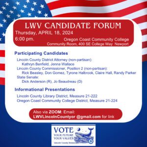 Zoom option available, email lwvlincolncountyoregon@gmail.com for link