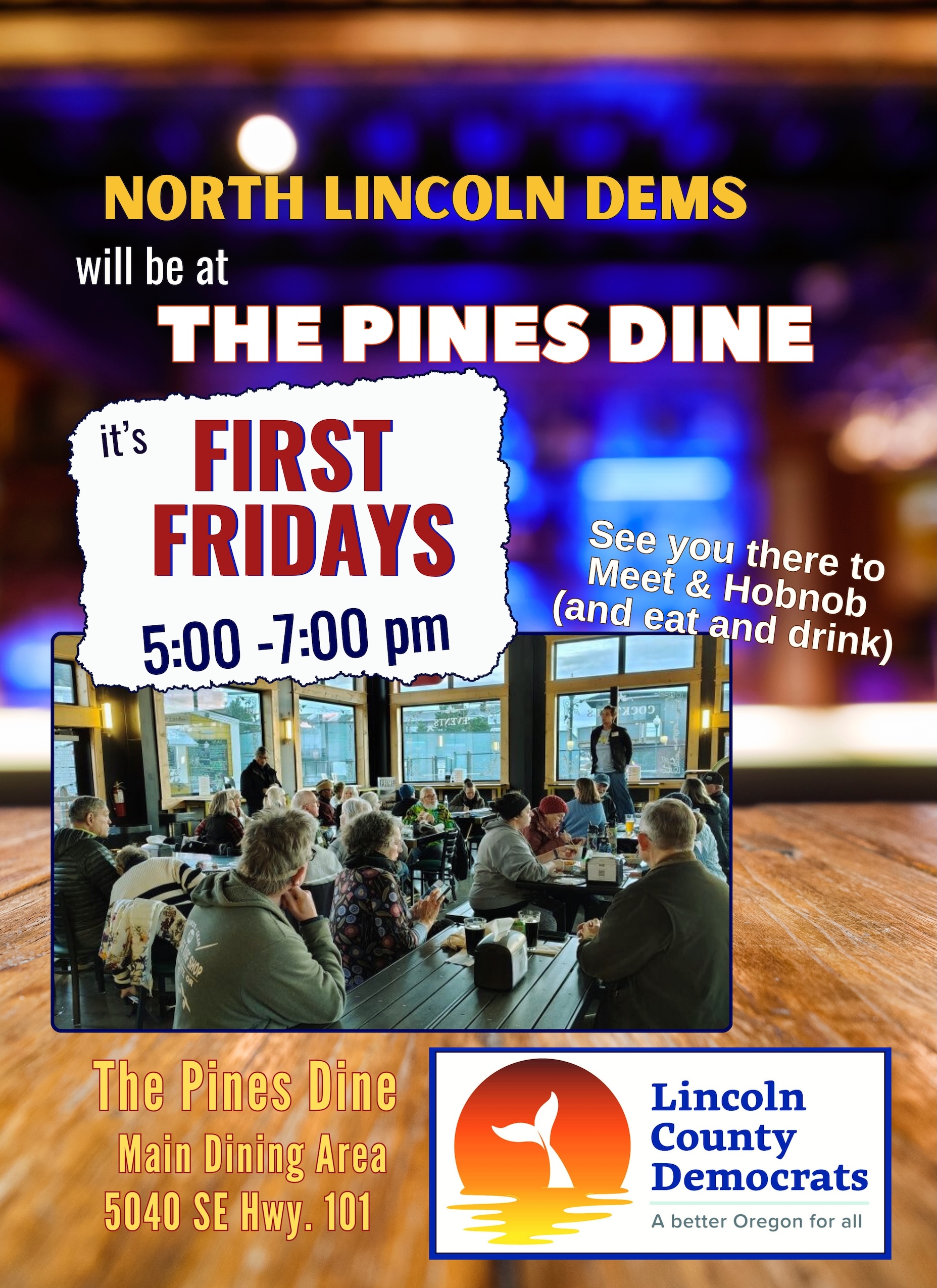 The North County Democrats meet at the Pines Dine in Lincoln City the first Friday of each month.